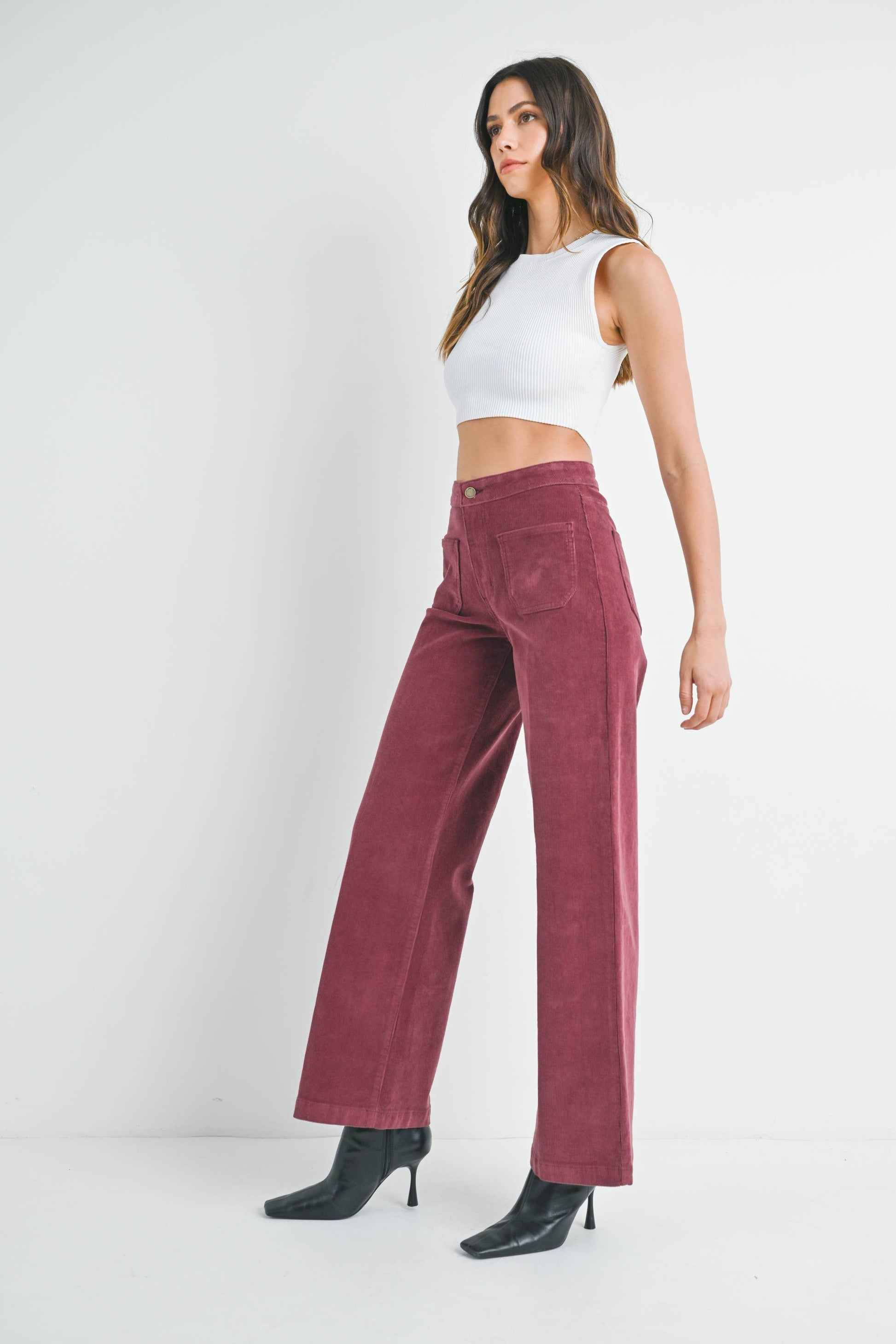 Corduroy Wide Leg Mini Patch Pocket Burgundy